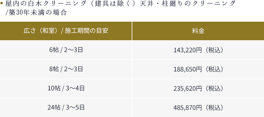 【一般家庭の白木クリーニングの概算費用】